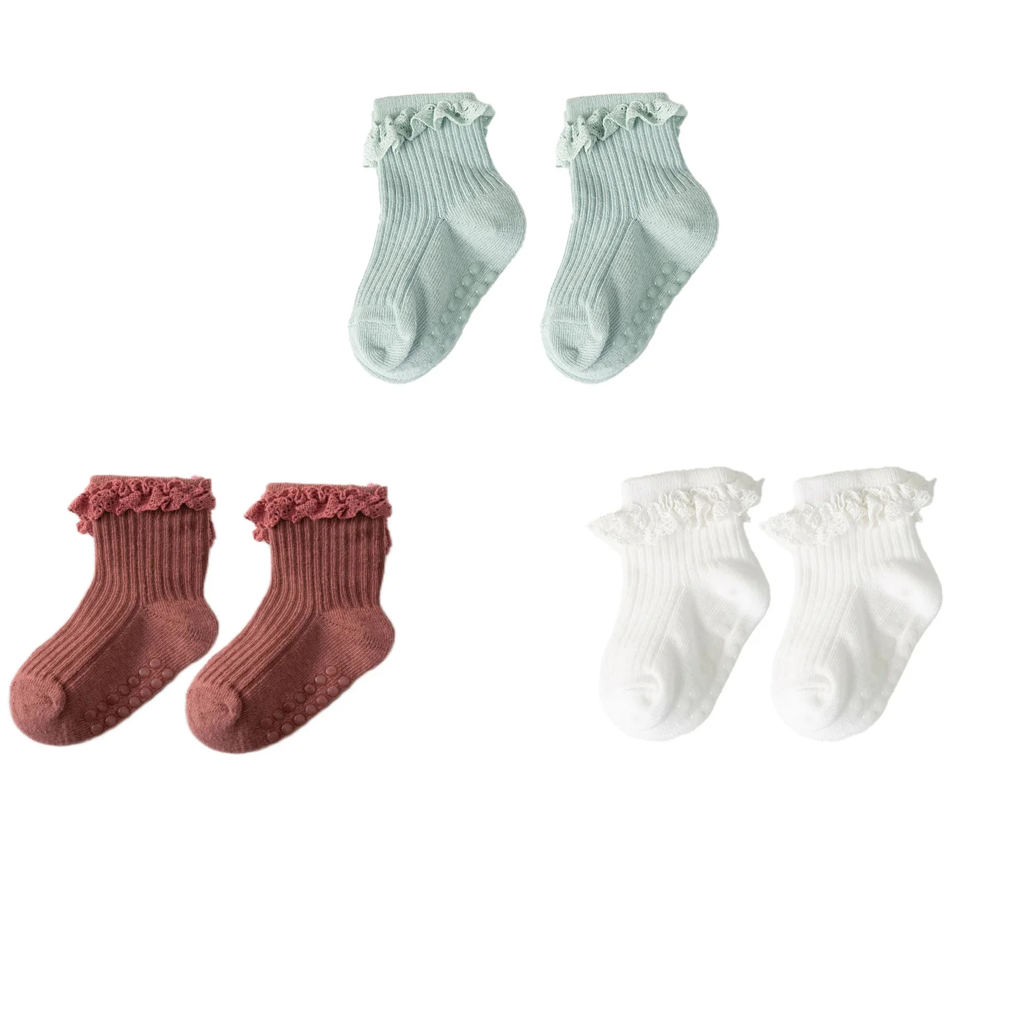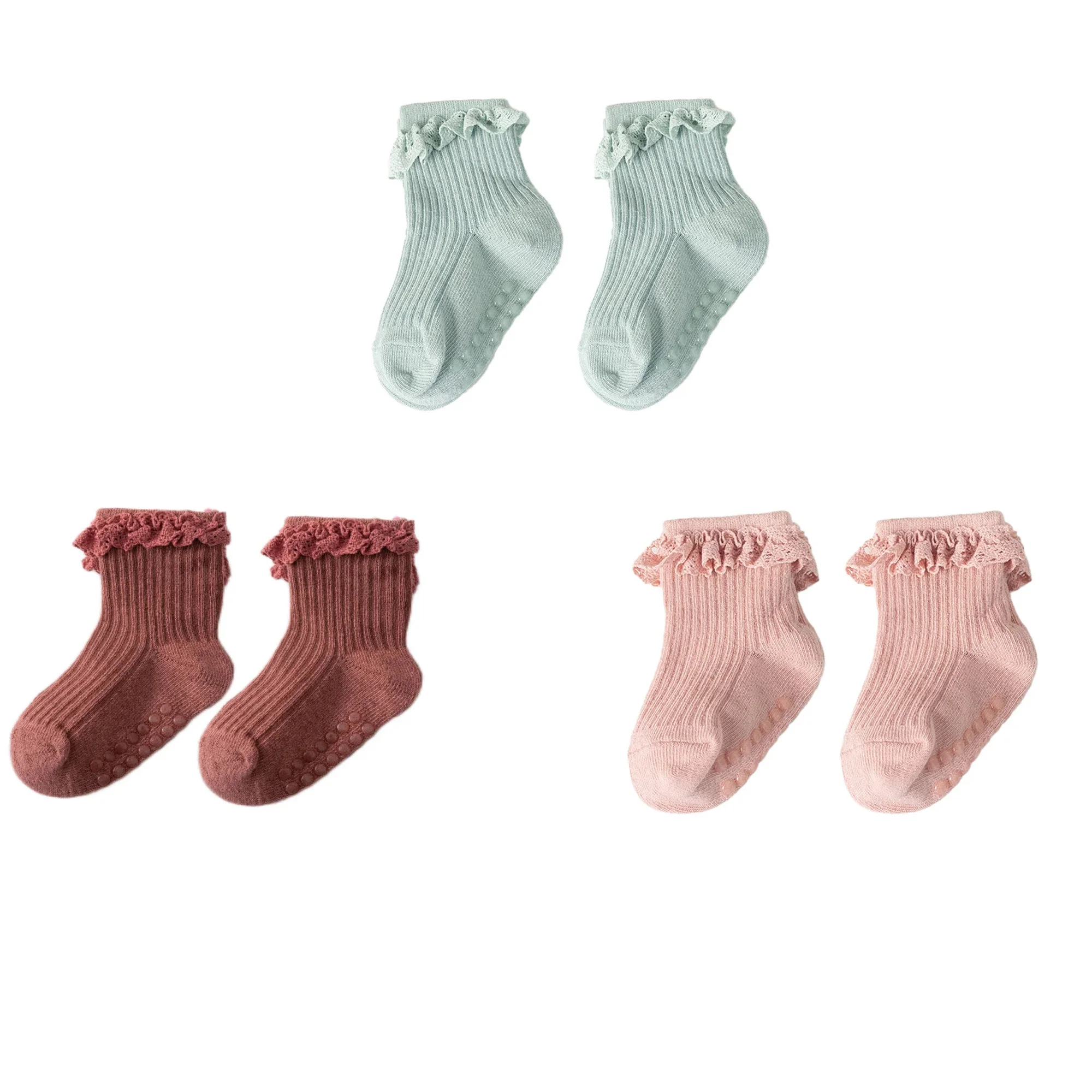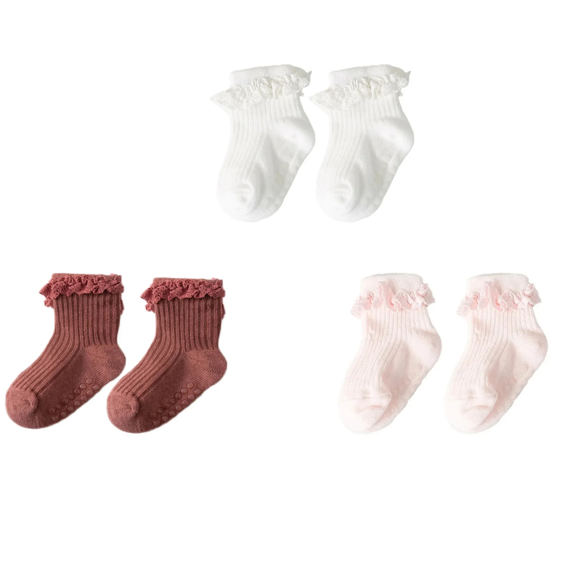 1/3/4/5pairs Cotton Pure Color Toddler Girl Lace Socks Infant Baby Girls Non-slip Socks Young Children Girl Cute Half Knee-socks