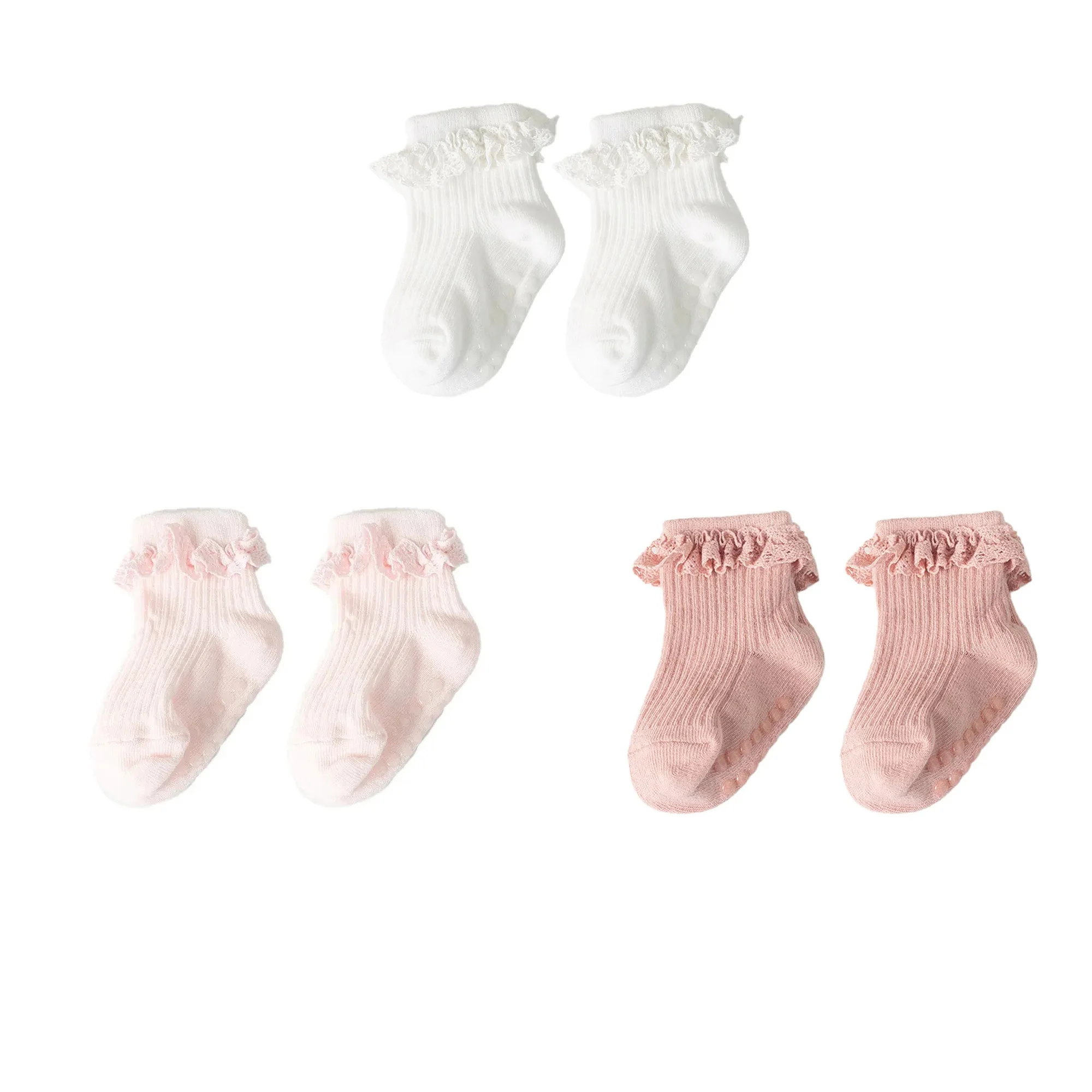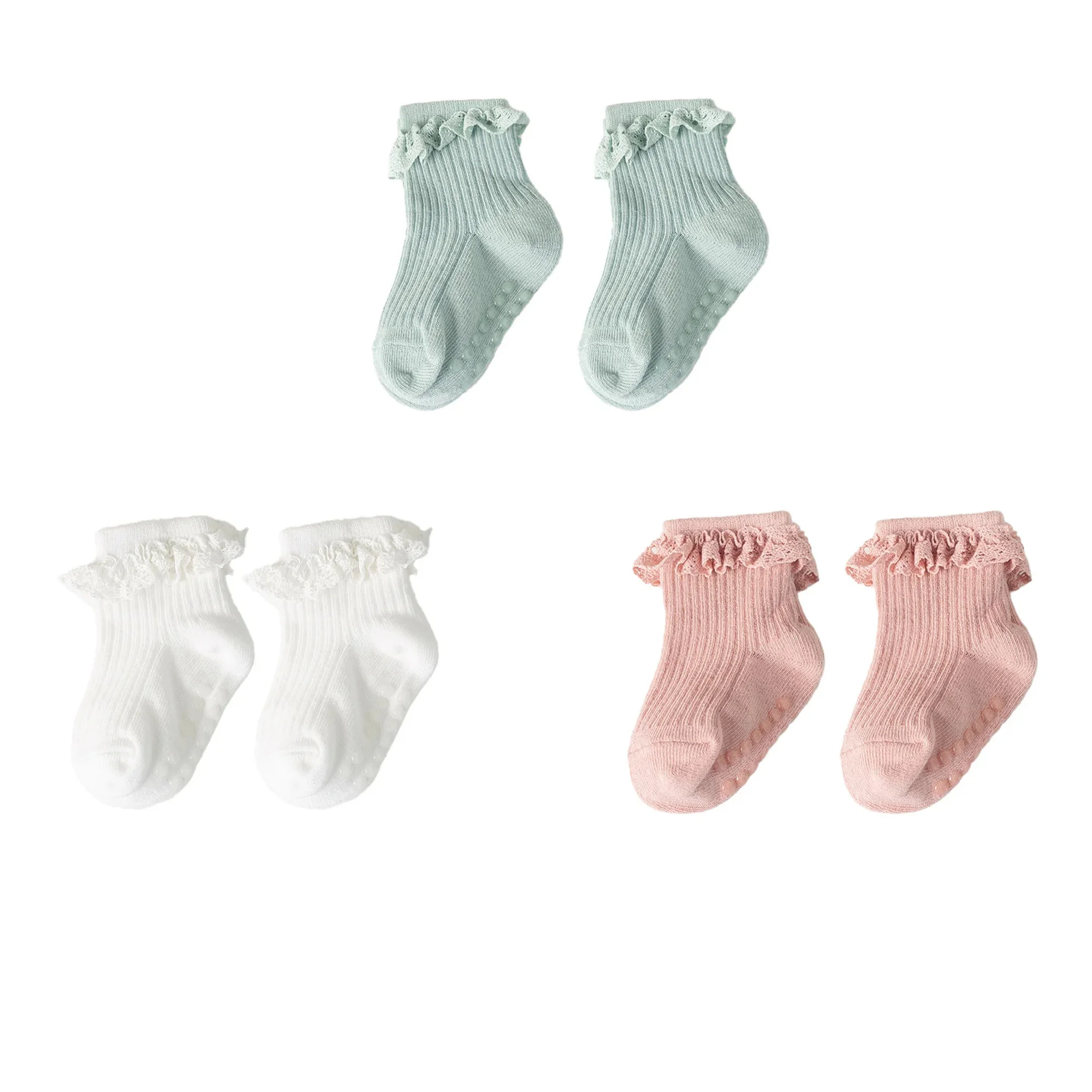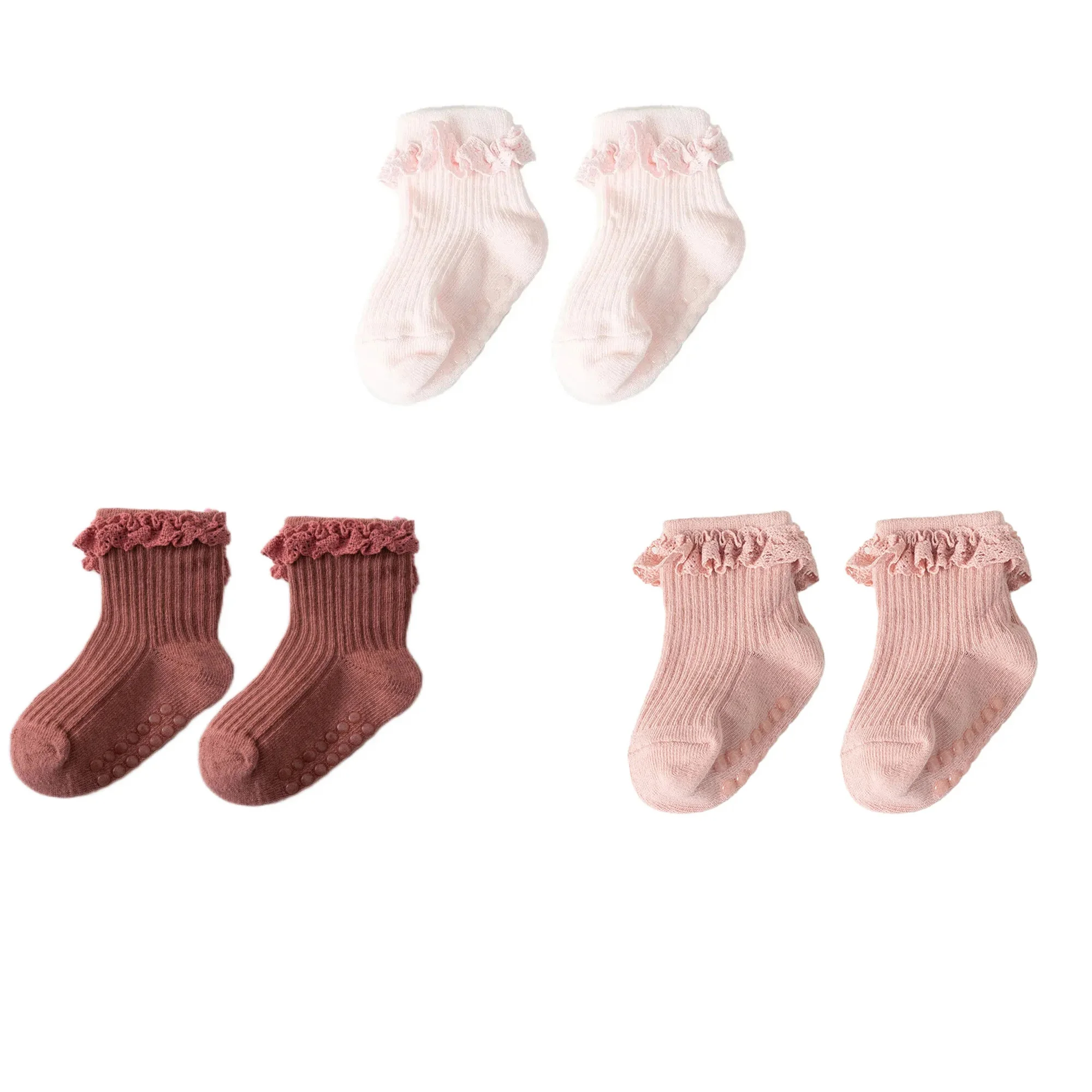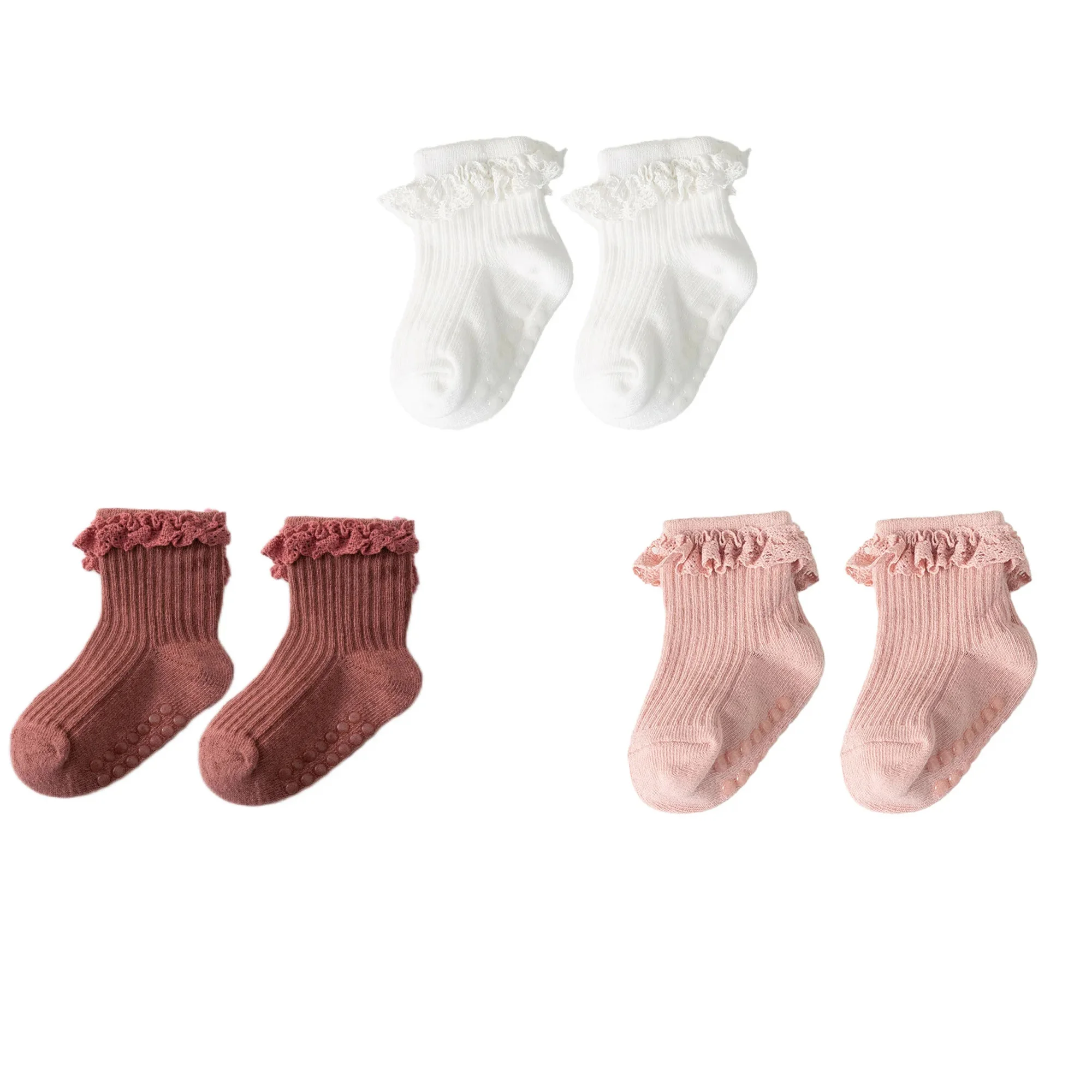 1/3/4/5pairs Cotton Pure Color Toddler Girl Lace Socks Infant Baby Girls Non-slip Socks Young Children Girl Cute Half Knee-socks