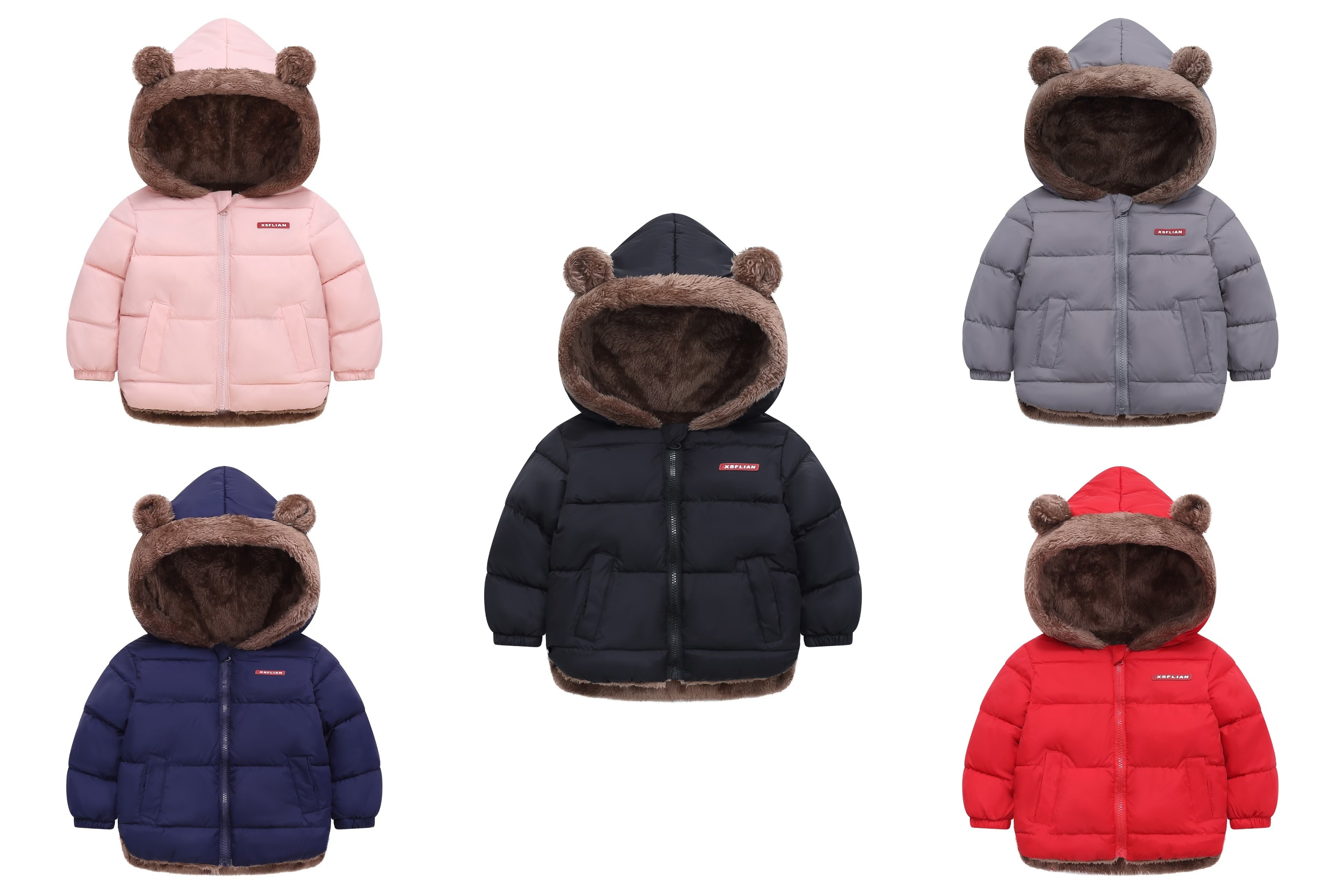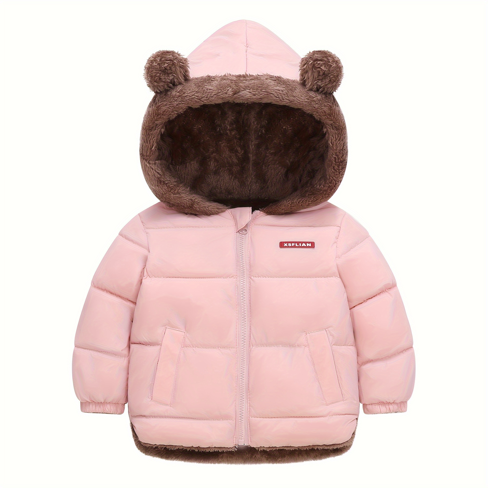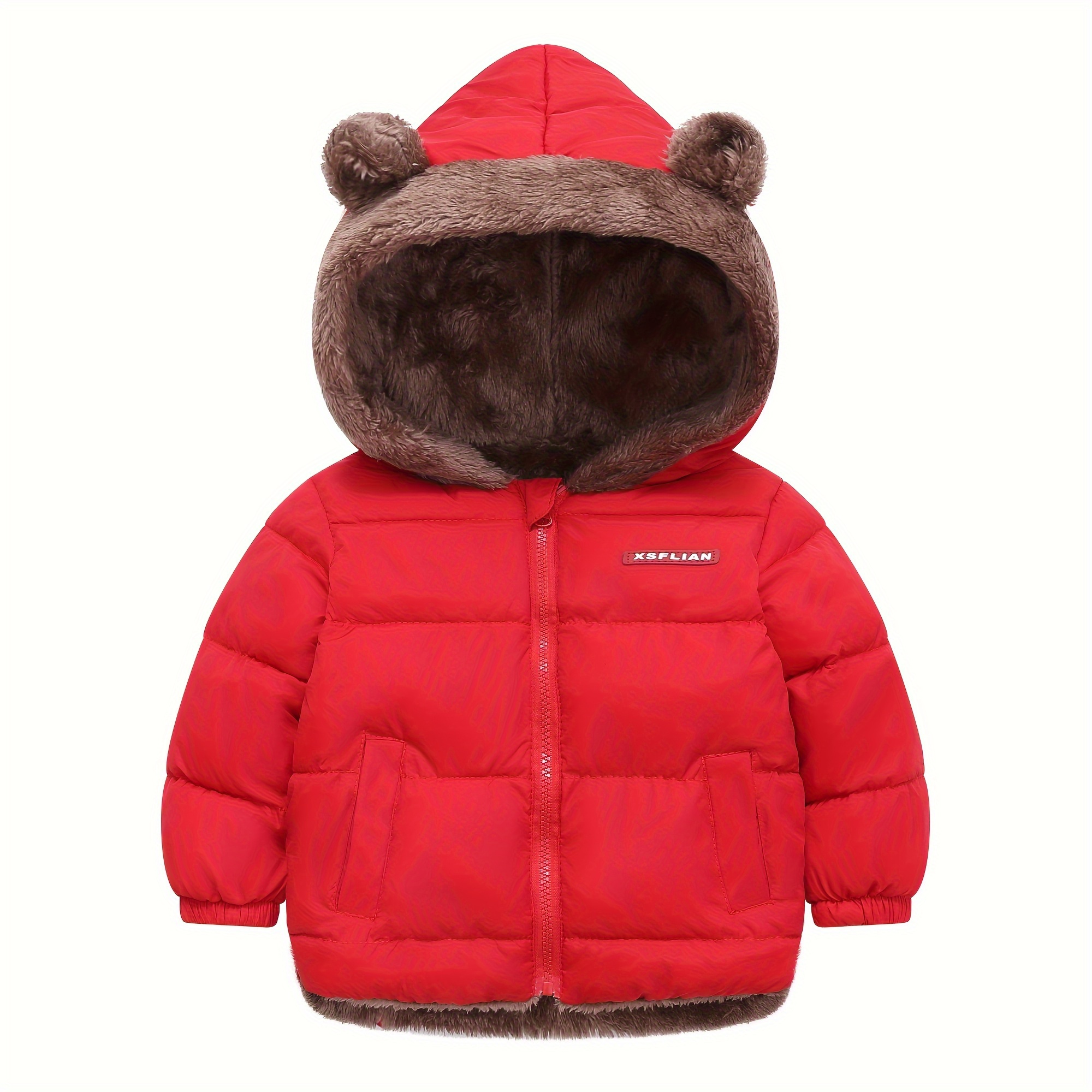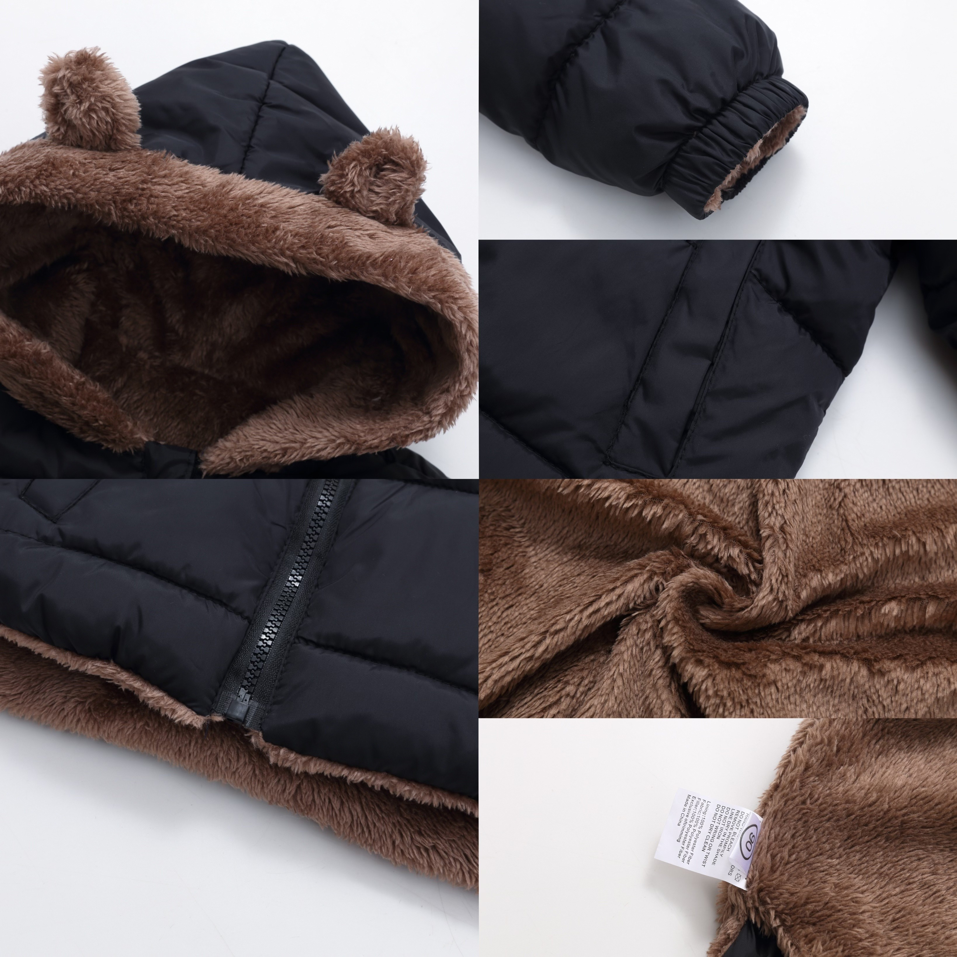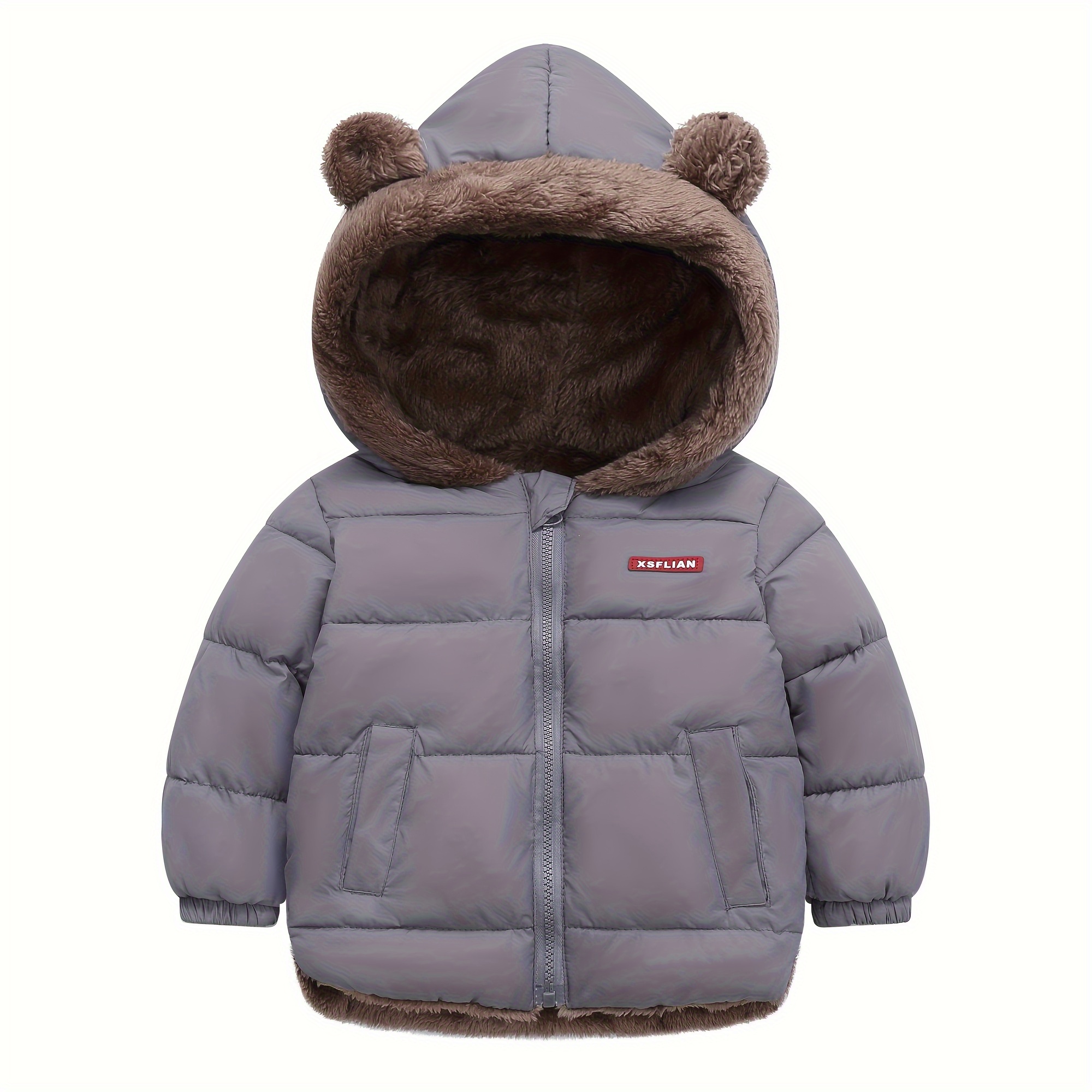 1 lightweight hooded jacket for boys in autumn and winter, with soft plush lining, thick insulation, cute bear ear hat zipper design, suitable for casual winter wear, durable zipper jacket