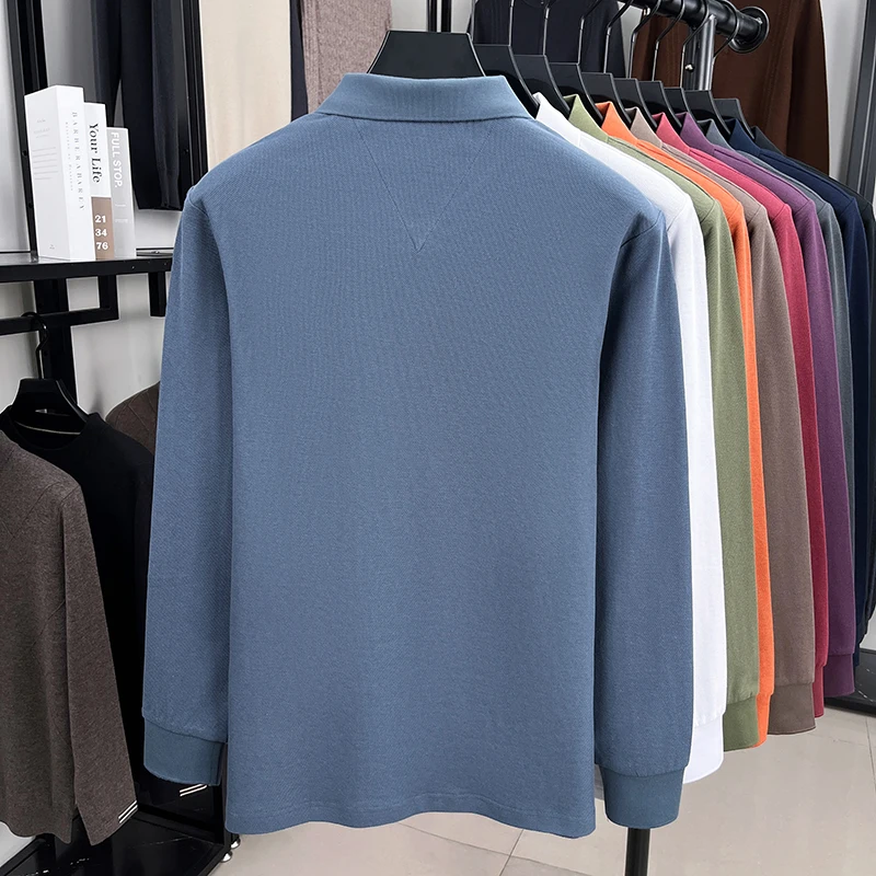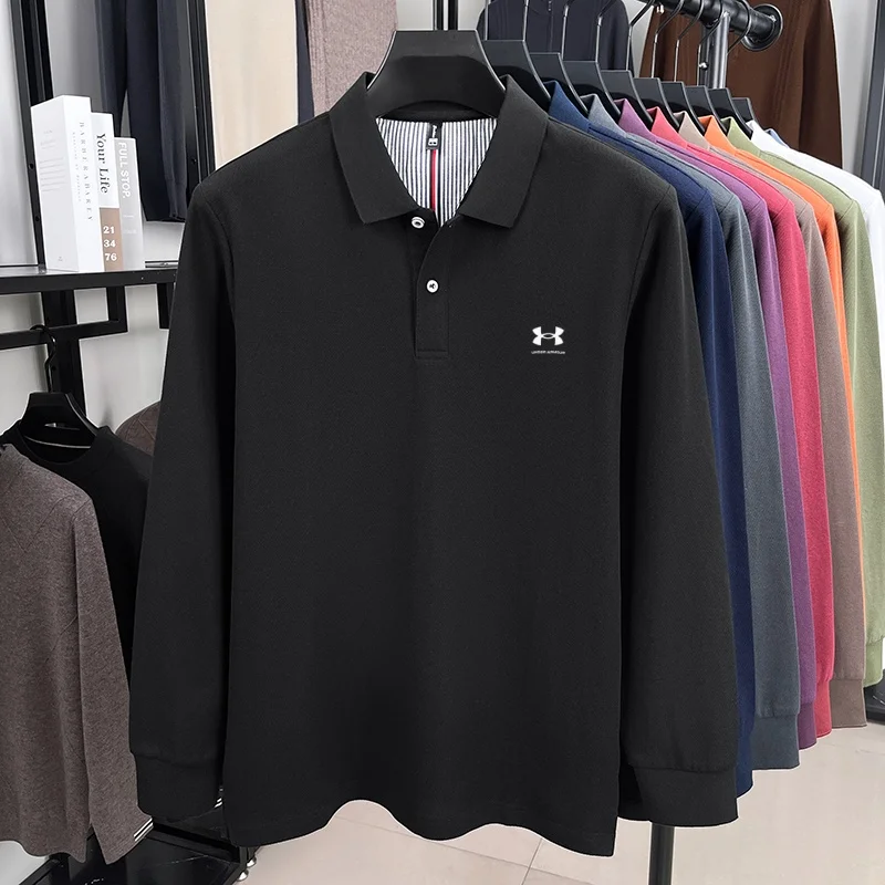 100% pure cotton autumn and winter men's high-quality brand long sleeved polo shirt embroidered business casual fashion T-shirt