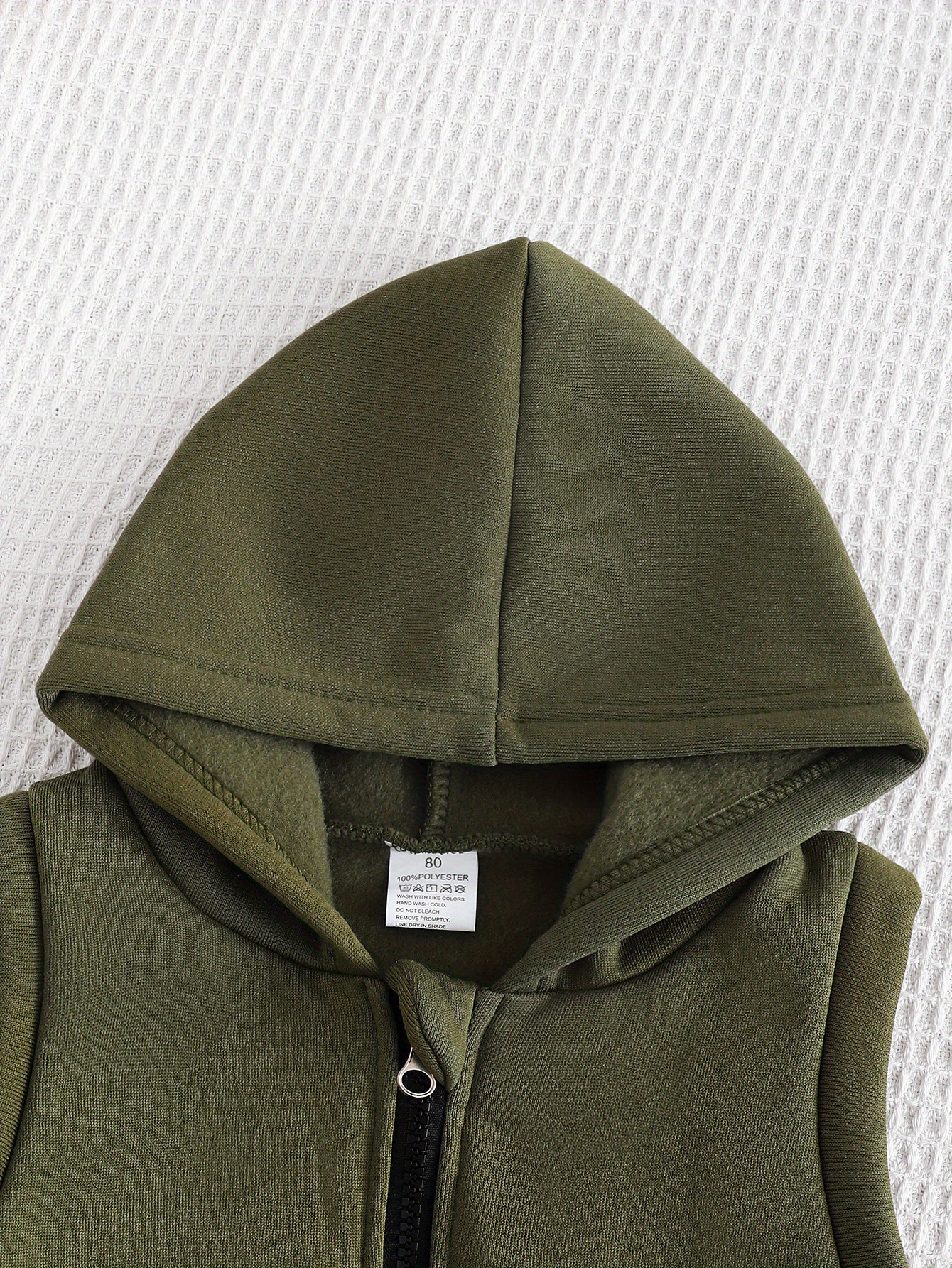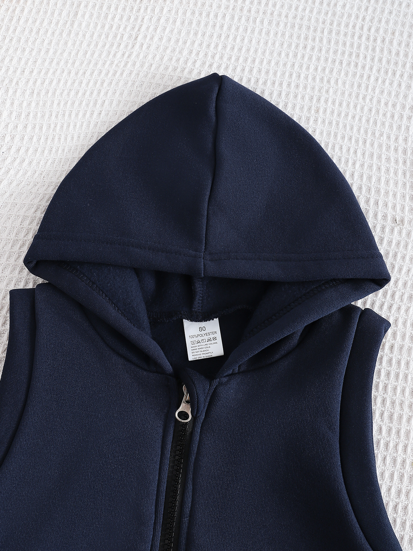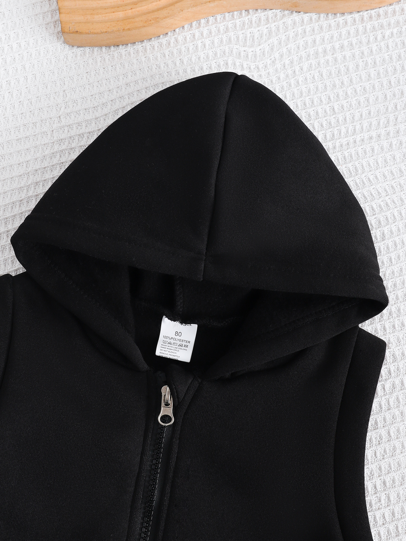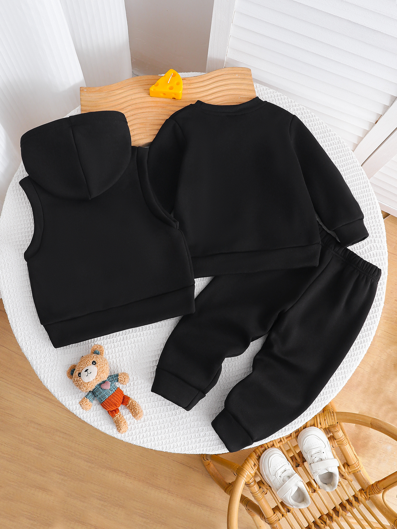 Disney Boys' Autumn/Winter New Three-Piece Set with Mickey Mouse Classic Cartoon Print Long-Sleeve Round Neck Hoodie and Zip-Up Sleeveless Top, Matching Printed Sweatpants - Fleece-Lined Thickened Warm Comfortable Outfit for