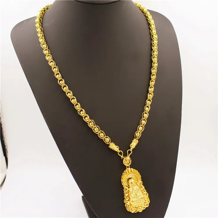 Luxury 24K 9999 Pure Gold real gold Men's Necklace Guan Gong Guanyin Faucet Pendant Necklace