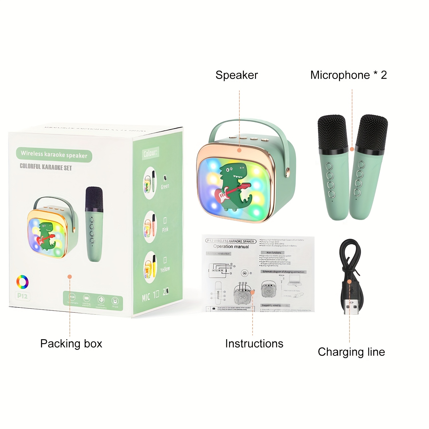Mini Karaoke Machine with LED Lights, Portable Wireless Speaker, Singing, Multiple Modes, Suitable for Family Parties, Birthdays, Holiday Gifts, Suitable for Children Over Three Years Old