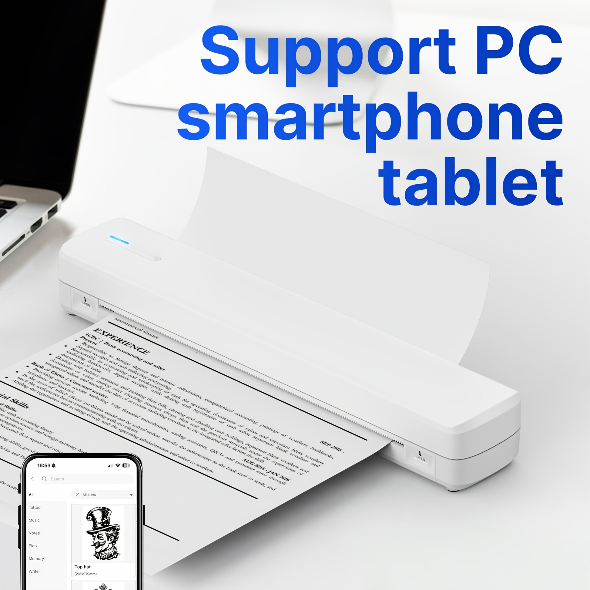 Portable Travel Printer-Wireless Thermal Printer-Tattoo Printer Supports 8.5x11 US Letter And A4 Thermal Paper Tattoo Paper Compatible with Android And IOS Phones And Laptops