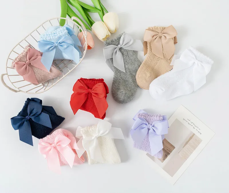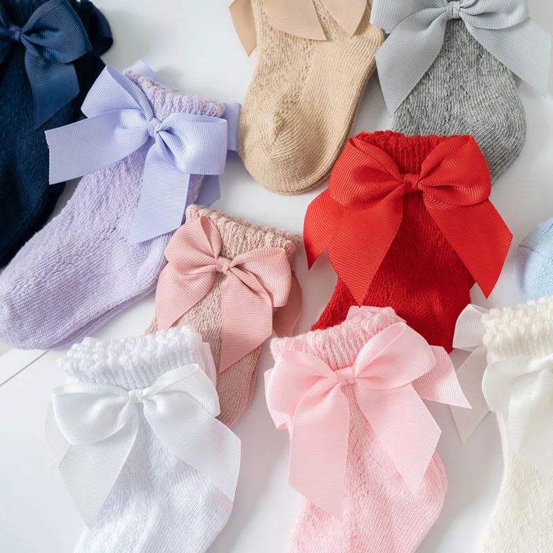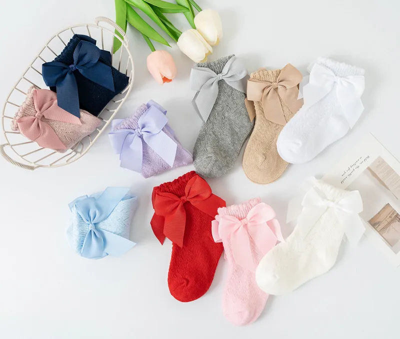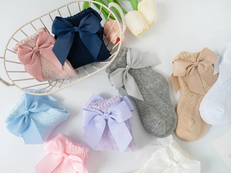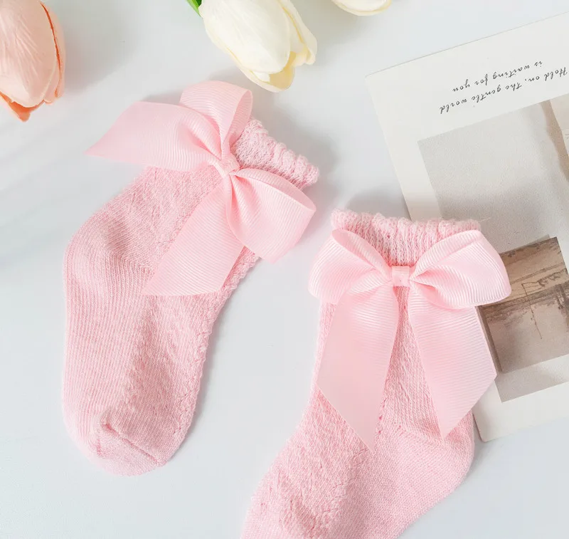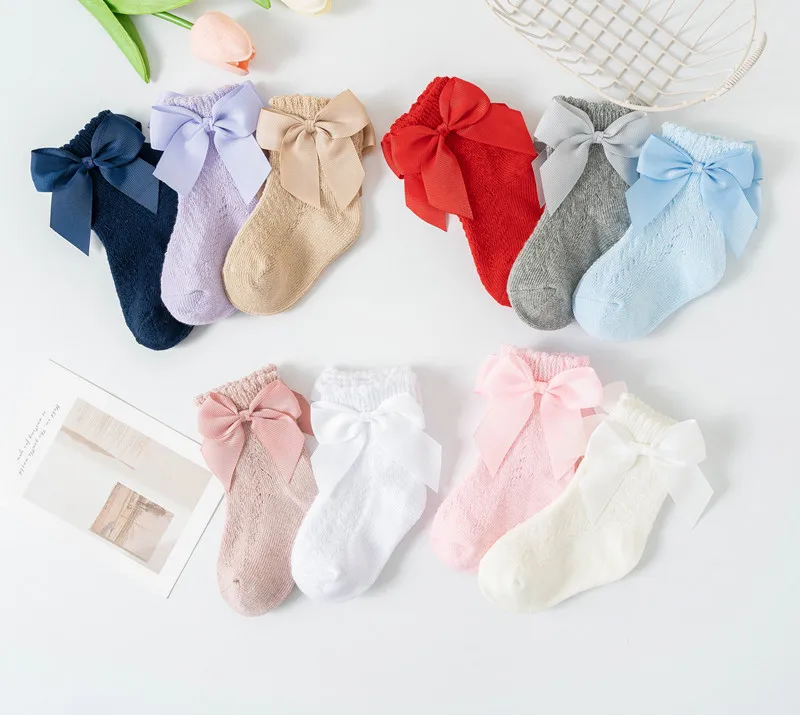 Summer Baby Girls Socks Big Bows Breathable Children Short Sock Hollow Toddlers Kids Cotton Princess Cute Socks For 0-8Years