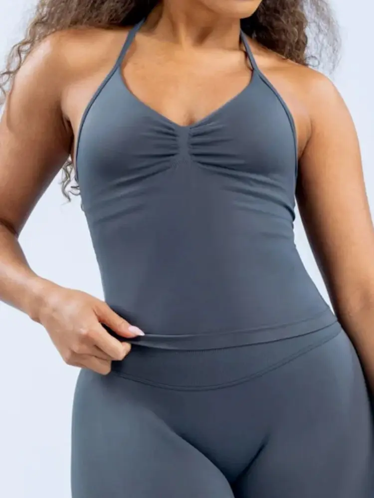 open back halter bra: padded sports bra
